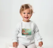 Le nostre felpe per neonati sono realizzate all'85% in cotone biologico ed etico e al 15% in poliestere riciclato.