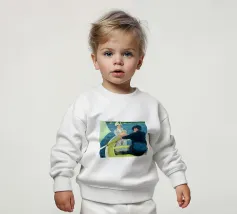 Le nostre felpe per neonati sono realizzate all'85% in cotone biologico ed etico e al 15% in poliestere riciclato.