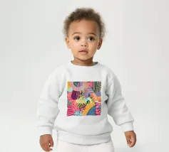 Le nostre felpe per neonati sono realizzate all'85% in cotone biologico ed etico e al 15% in poliestere riciclato.