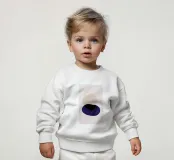 Le nostre felpe per neonati sono realizzate all'85% in cotone biologico ed etico e al 15% in poliestere riciclato.