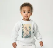 Le nostre felpe per neonati sono realizzate all'85% in cotone biologico ed etico e al 15% in poliestere riciclato.
