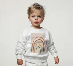 Le nostre felpe per neonati sono realizzate all'85% in cotone biologico ed etico e al 15% in poliestere riciclato.