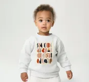 Le nostre felpe per neonati sono realizzate all'85% in cotone biologico ed etico e al 15% in poliestere riciclato.