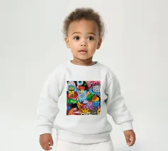 Le nostre felpe per neonati sono realizzate all'85% in cotone biologico ed etico e al 15% in poliestere riciclato.