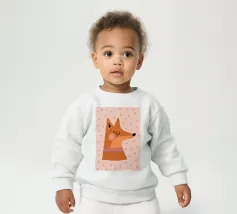 Le nostre felpe per neonati sono realizzate all'85% in cotone biologico ed etico e al 15% in poliestere riciclato.
