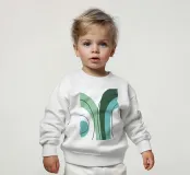 Le nostre felpe per neonati sono realizzate all'85% in cotone biologico ed etico e al 15% in poliestere riciclato.
