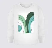 Linee curve nei toni del verde e del turchese creano un motivo astratto e rilassante su uno sfondo bianco. I contorni neri accentuano il flusso organico delle forme.