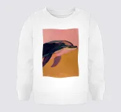 Una semplice veduta di un delfino nei toni caldi del rosa e dell'ocra, con una presenza calma ed equilibrata.