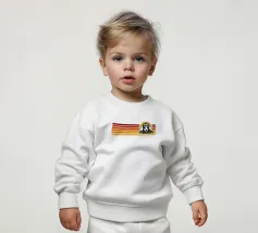 Le nostre felpe per neonati sono realizzate all'85% in cotone biologico ed etico e al 15% in poliestere riciclato.