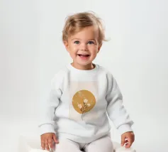 Le nostre felpe per neonati sono realizzate all'85% in cotone biologico ed etico e al 15% in poliestere riciclato.