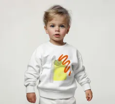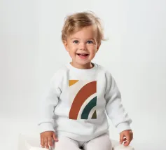 Le nostre felpe per neonati sono realizzate all'85% in cotone biologico ed etico e al 15% in poliestere riciclato.