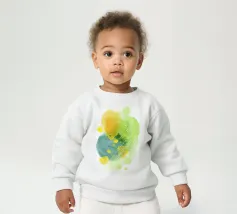 Le nostre felpe per neonati sono realizzate all'85% in cotone biologico ed etico e al 15% in poliestere riciclato.
