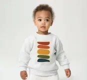 Le nostre felpe per neonati sono realizzate all'85% in cotone biologico ed etico e al 15% in poliestere riciclato.
