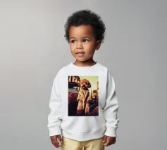 Le nostre felpe per neonati sono realizzate all'85% in cotone biologico ed etico e al 15% in poliestere riciclato.