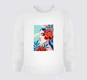 Questa opera d'arte raffigura una donna circondata da bellissimi fiori, che creano un'atmosfera pacifica e armoniosa.