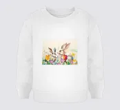 Due coniglietti pasquali stilizzati tra fiori colorati, pulcini e farfalle: un motivo allegro in stile poligonale, ideale per il periodo pasquale e l'inizio della primavera. Due coniglietti geometrici come motivo centrale Fiori primaverili colorati e crochi Inclusi simpatici pulcini e farfalle svolazzanti Design moderno e giocoso per la Pasqua Ideale per prodotti stagionali dal sapore primaverile