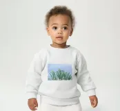 Le nostre felpe per neonati sono realizzate all'85% in cotone biologico ed etico e al 15% in poliestere riciclato.