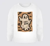 Un giocoso fantasma di Halloween circondato da pipistrelli.