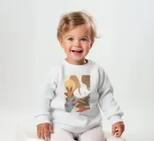 Le nostre felpe per neonati sono realizzate all'85% in cotone biologico ed etico e al 15% in poliestere riciclato.