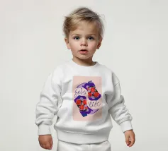 Le nostre felpe per neonati sono realizzate all'85% in cotone biologico ed etico e al 15% in poliestere riciclato.