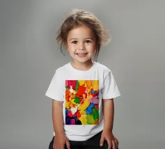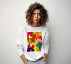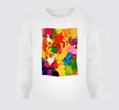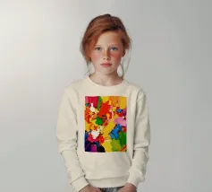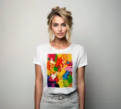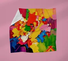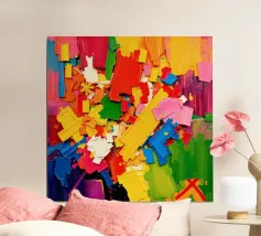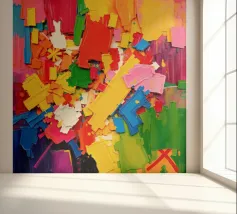 Colori vivaci si fondono in forme dinamiche, creando una composizione gioiosa ed energica. L'assortimento di tonalità offre un'esperienza visiva sorprendente e piena di movimento.