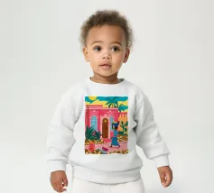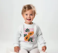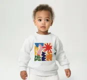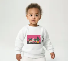 Le nostre felpe per neonati sono realizzate all'85% in cotone biologico ed etico e al 15% in poliestere riciclato.