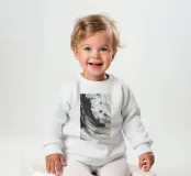 Le nostre felpe per neonati sono realizzate all'85% in cotone biologico ed etico e al 15% in poliestere riciclato.