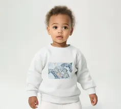 Le nostre felpe per neonati sono realizzate all'85% in cotone biologico ed etico e al 15% in poliestere riciclato.