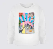 La follia colorata e il caos del collage. Ogni cosa casuale in un'immagine, con un tocco di grafica retrò. Dinosauri, alieni, polpi, funghi, pesci palla, uova fritte, montagne, lampioni, luna, biglietti del cinema, ecc.
