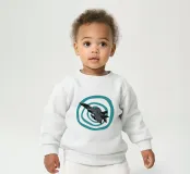 Le nostre felpe per neonati sono realizzate all'85% in cotone biologico ed etico e al 15% in poliestere riciclato.