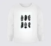 Una combinazione di piume create con timbri linoleum e inchiostro. Un'illustrazione forte, in bianco e nero.