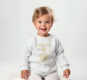 Le nostre felpe per neonati sono realizzate all'85% in cotone biologico ed etico e al 15% in poliestere riciclato.