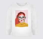 Questo vivace ritratto pop art presenta una rossa sicura di sé che indossa audaci occhiali verdi da gatta e un dolcevita giallo. Il mix di elementi retrò e moderni crea una divertente dichiarazione di intelligenza, stile e impavida individualità.