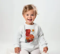 Le nostre felpe per neonati sono realizzate all'85% in cotone biologico ed etico e al 15% in poliestere riciclato.