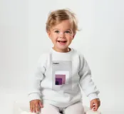 Le nostre felpe per neonati sono realizzate all'85% in cotone biologico ed etico e al 15% in poliestere riciclato.
