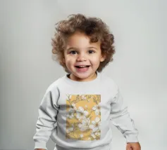 Le nostre felpe per neonati sono realizzate all'85% in cotone biologico ed etico e al 15% in poliestere riciclato.