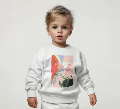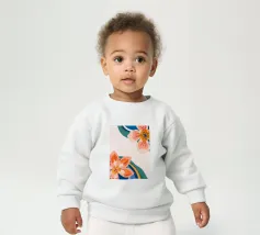 Le nostre felpe per neonati sono realizzate all'85% in cotone biologico ed etico e al 15% in poliestere riciclato.
