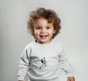 Le nostre felpe per neonati sono realizzate all'85% in cotone biologico ed etico e al 15% in poliestere riciclato.