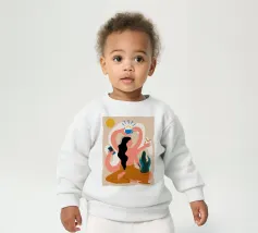 Le nostre felpe per neonati sono realizzate all'85% in cotone biologico ed etico e al 15% in poliestere riciclato.