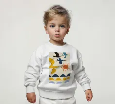 Le nostre felpe per neonati sono realizzate all'85% in cotone biologico ed etico e al 15% in poliestere riciclato.