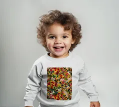 Le nostre felpe per neonati sono realizzate all'85% in cotone biologico ed etico e al 15% in poliestere riciclato.