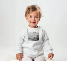 Le nostre felpe per neonati sono realizzate all'85% in cotone biologico ed etico e al 15% in poliestere riciclato.