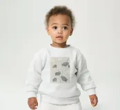 Le nostre felpe per neonati sono realizzate all'85% in cotone biologico ed etico e al 15% in poliestere riciclato.