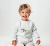 Le nostre felpe per neonati sono realizzate all'85% in cotone biologico ed etico e al 15% in poliestere riciclato.