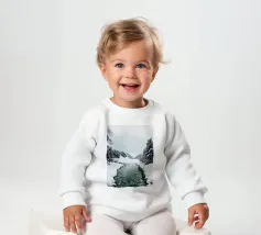 Le nostre felpe per neonati sono realizzate all'85% in cotone biologico ed etico e al 15% in poliestere riciclato.