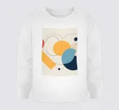 L'opera d'arte presenta una disposizione dinamica di forme geometriche dai colori vivaci. Cerchi, rettangoli e linee si intrecciano, creando un senso di movimento ed equilibrio.