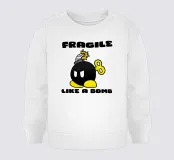 Questo disegno presenta una simpatica bomba giocattolo con piedi gialli e un'espressione determinata, accompagnata dalla frase "Fragile come una bomba!". Un'arte che unisce umorismo e creatività per illustrare il contrasto tra fragilità e potenza, con un design ispirato all'universo geek e nostalgico. Perfetto per i giocatori, gli appassionati di cultura pop e tutti coloro che apprezzano i messaggi umoristici e d'impatto.