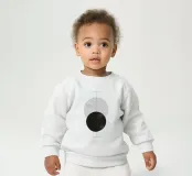 Le nostre felpe per neonati sono realizzate all'85% in cotone biologico ed etico e al 15% in poliestere riciclato.