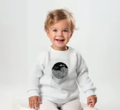 Le nostre felpe per neonati sono realizzate all'85% in cotone biologico ed etico e al 15% in poliestere riciclato.