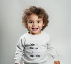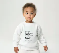 Le nostre felpe per neonati sono realizzate all'85% in cotone biologico ed etico e al 15% in poliestere riciclato.